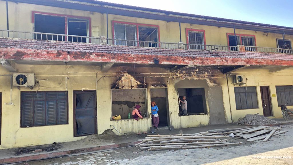 आगलागीबाट कुरुप बनेको सुदूरपश्चिम प्रदेश सभा सचिवालयको मर्मत र सरसफाईको काम भईरहेको छ । गेट मर्मत हुनुका साथै बैठक भवनभित्र नष्ट भएका फर्निचरहरु एक ठाउँ राखिएका छन भने आगलागिबाट क्षति नभएका कुर्सी टेबललाई सुरक्षित राखिएको छ ।