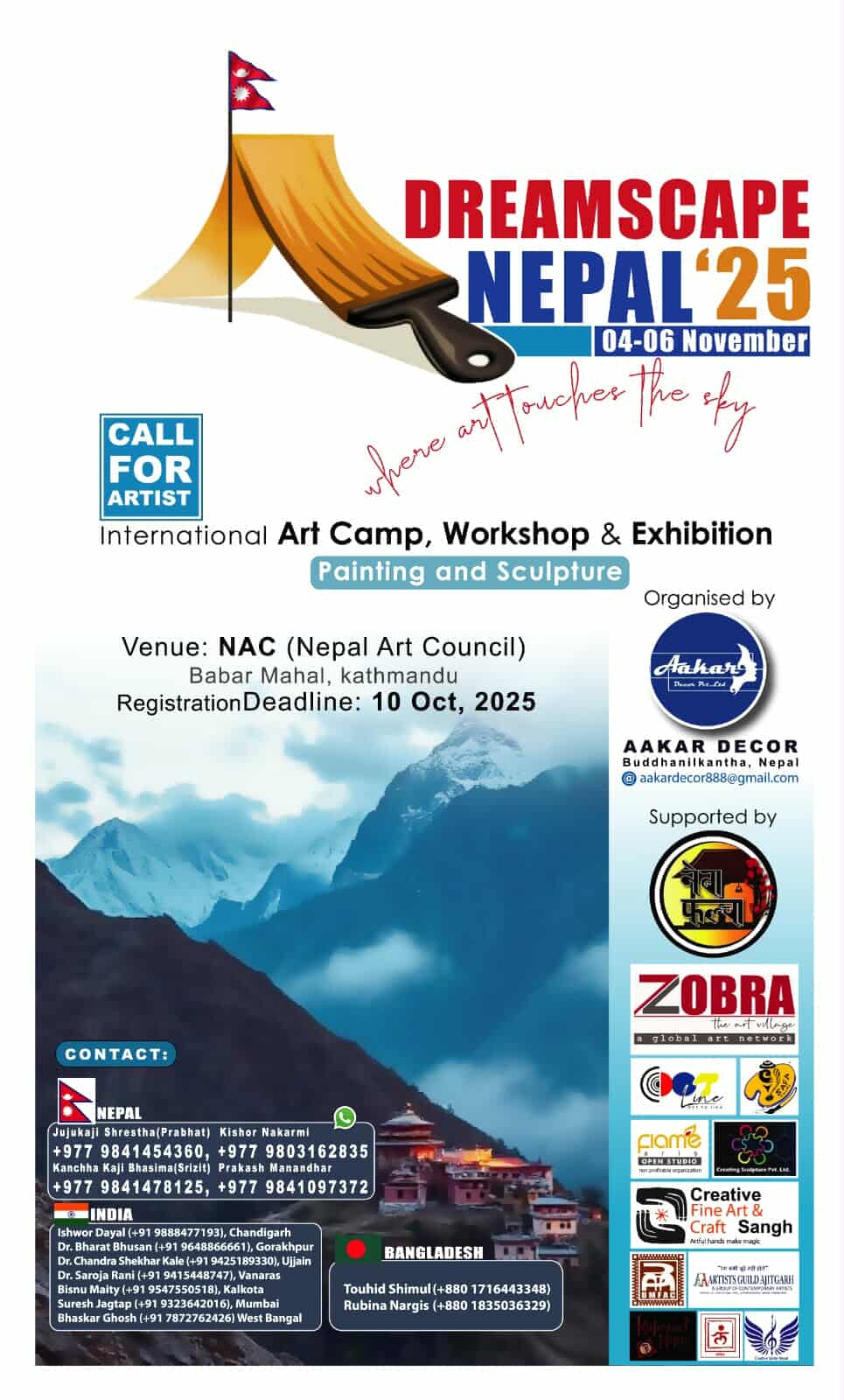 ड्रिमस्केप नेपाल शीर्षक दिएर भएको प्रदर्शनीमा धार्मिक, आध्यात्मिक, प्रकृति र आधुनिक चित्रकलाहरु समिश्रण रहेको आयोजक आकार डेकोरले जानकारी दिएको छ ।
