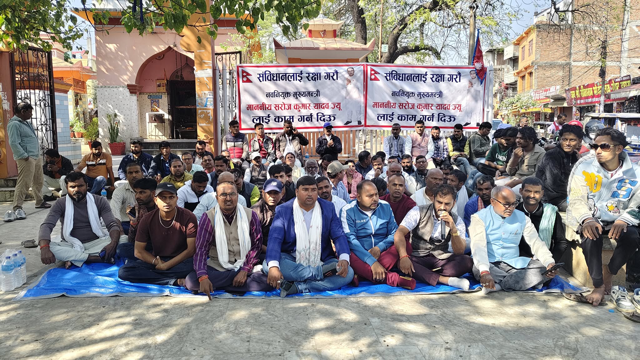 मधेसका मुख्यमन्त्री यादवको बचाउमा उहाँका समर्थकहरू पनि धर्नामा
