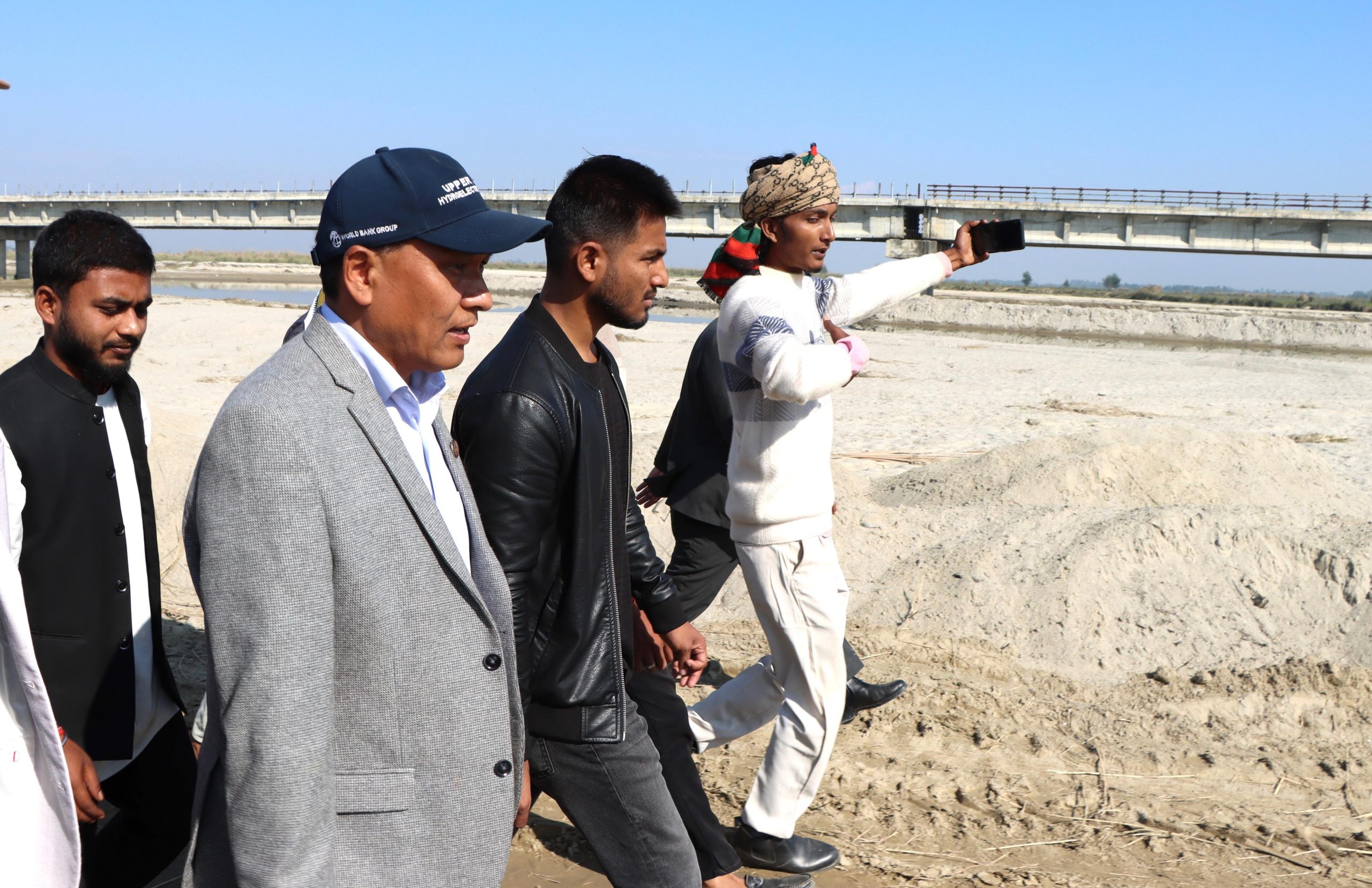 मन्त्री कुलमान घिसिङद्वारा कमला नदीमा निर्माणाधीन समस्या ग्रस्त पुलको स्थलगत निरीक्षण