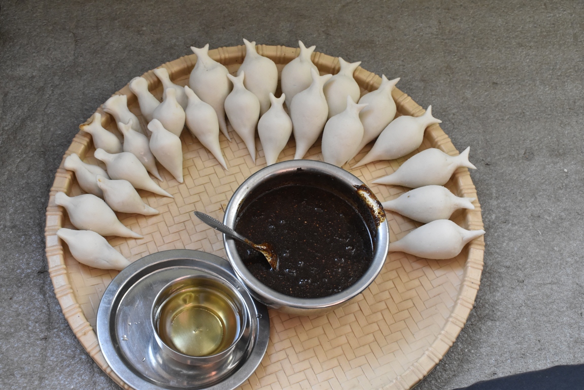 त्यसपछि पिठोको डल्लोलाई चोर औंलाले छेड्नुपर्छ । औँला घुमाउँदै जाँदा पिठोको डल्लो पातलिँदै जान्छ । पातलो डल्लो झन्डै शङ्खको आकारमा परिणत हुन्छ । यसरी गर्दै जाँदा माथिल्लो भाग मन्दिरको गजुर जस्तै चुच्चो पर्दै जान्छ । तल्लो भागमा खोक्रो ठाउँ बन्छ । खोक्रो भागमा तिल र चाकुको मिश्रण राखेर बन्द गरी यःमरी तयार गरिन्छ । पछिल्लो समय यःमरीमा खुवा, मासु, गुँदपाक, मास, मुँगीलगायत सामग्री राखी पकाउने चलन छ ।