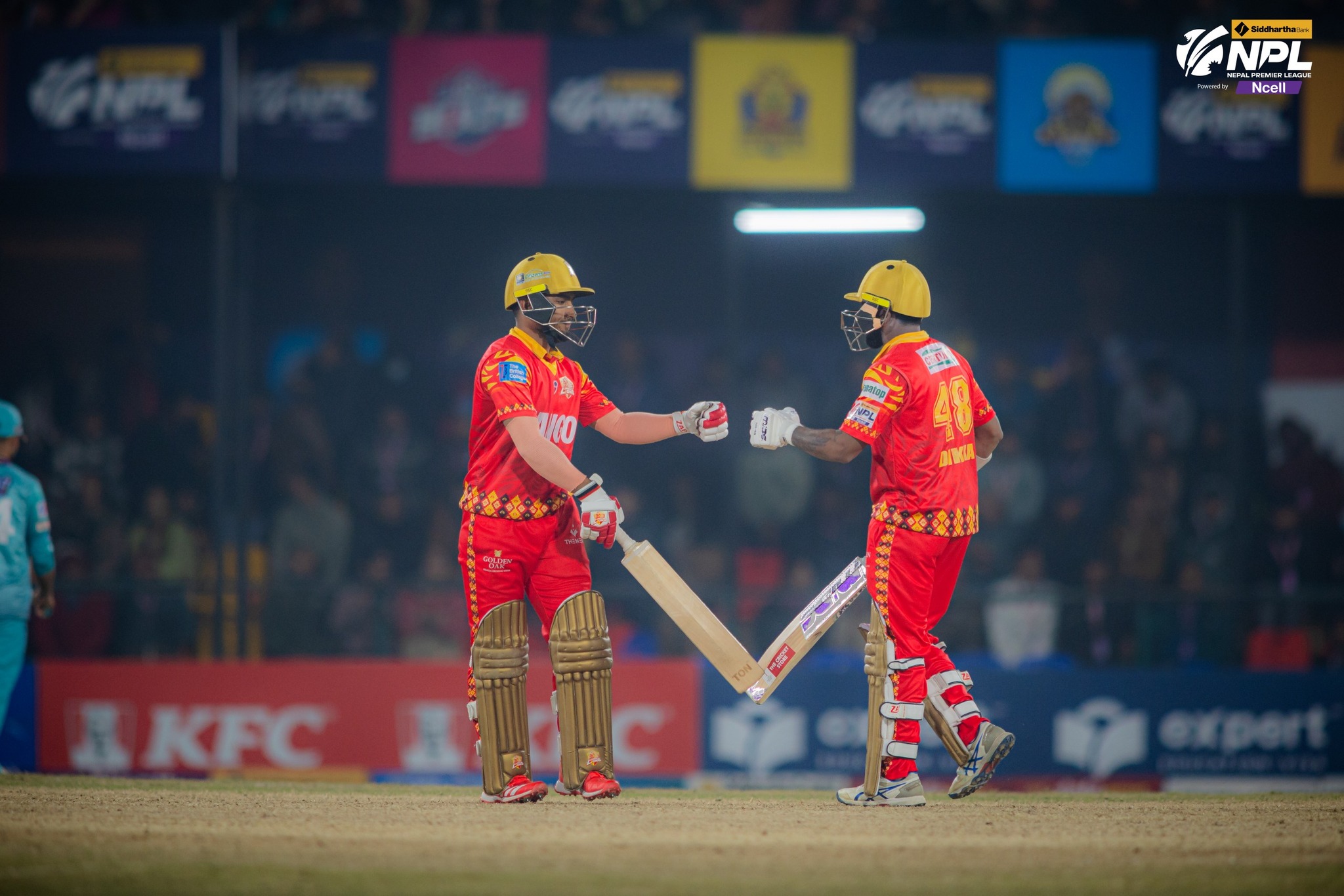 काठमाडौँका लागि सन्तोष यादवले सर्वाधिक २३ रनको योगदान दिए । उनले १७ बलमा एक छक्काको सहयोगमा २३ रन जोडेका हुन् । त्यसैगरी, जोन सिमसन र मोहमद आदिल आलमले समान १८/१८ रन जोडे भने भीम सार्कीले १४ रन बनाए । कप्तान करण केसी नौ रनमा आउट भए ।