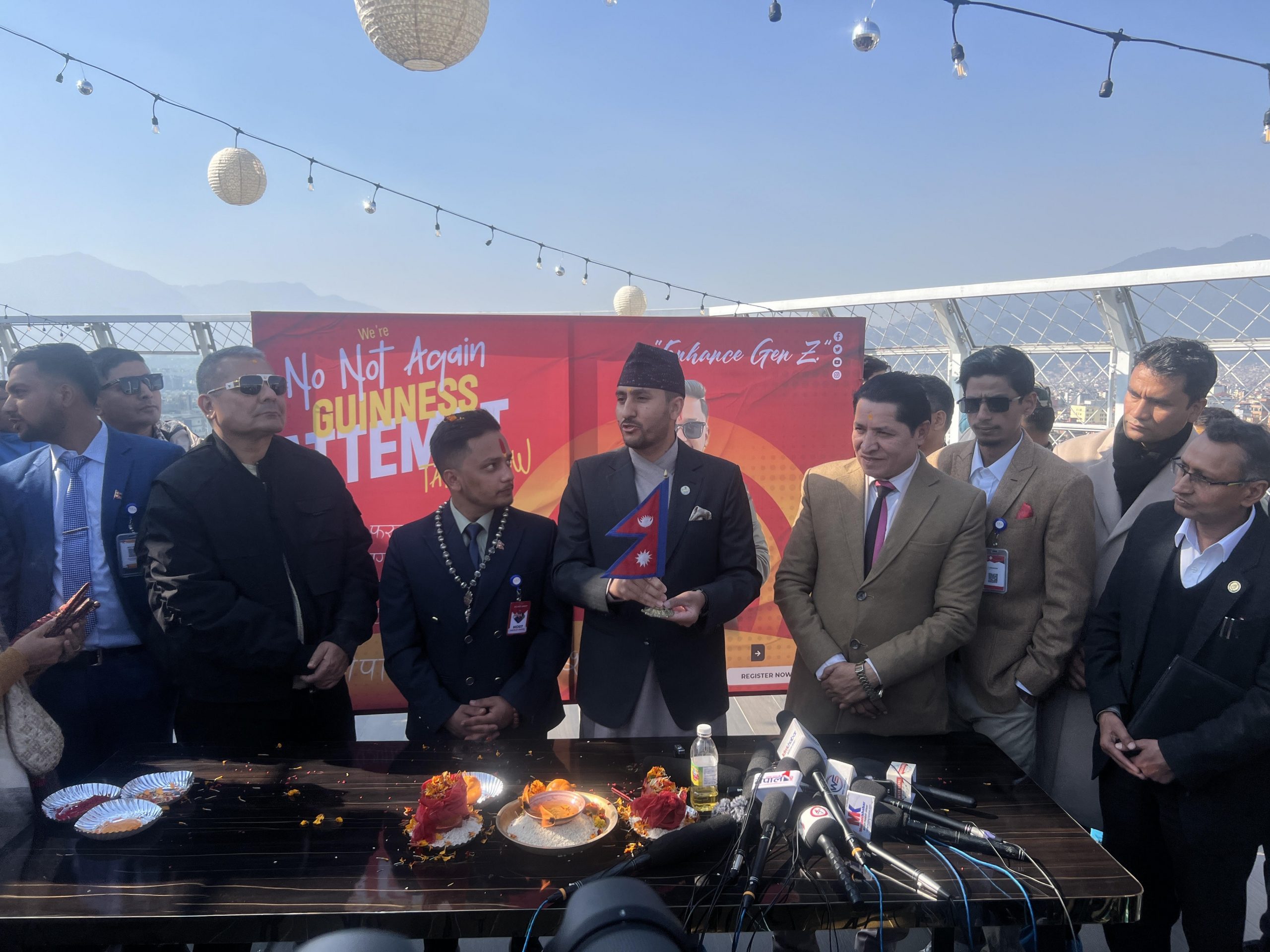 आजदेखि सुरु भएको ‘१०० घण्टा निरन्तर टेलिभिजन संवाद’ (नन–स्टप म्याराथन टिभी टक शो) को उद्घाटन गर्दै उहाँले नेपालीले विभिन्न क्षेत्रमा कायम गरेको विश्व कीर्तिमानले नेपालको पहिचान र स्वाभिमान विश्वभर छाएको बताउनुभयो ।