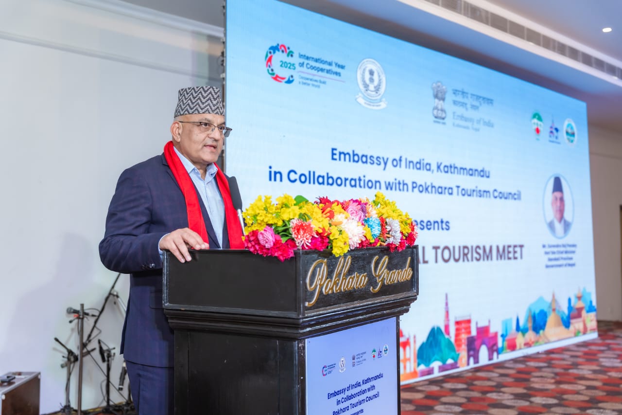 नेपालका लागि भारतीय राजदूतावास, पोखरा भ्रमण वर्ष २०२५, पोखरा पर्यटन परिषद्, उद्योग तथा पर्यटन मन्त्रालय गण्डकी प्रदेश, पोखरा महानगरपालिका र नेपाल पर्यटन बोर्डको सहकार्यमा पोखरामा आज आयोजित ‘सेकेन्ड इन्डिया–नेपाल टुरिज्म मिट’लाई सम्बोधन गर्दै उहाँले आफूहरूले सोचेअनुसार पोखराबाट नेपालभित्र र बाहिरका पर्यटकीय सहरमा सिधा उडान गर्न नसकिएकोे बताउनुभयो ।