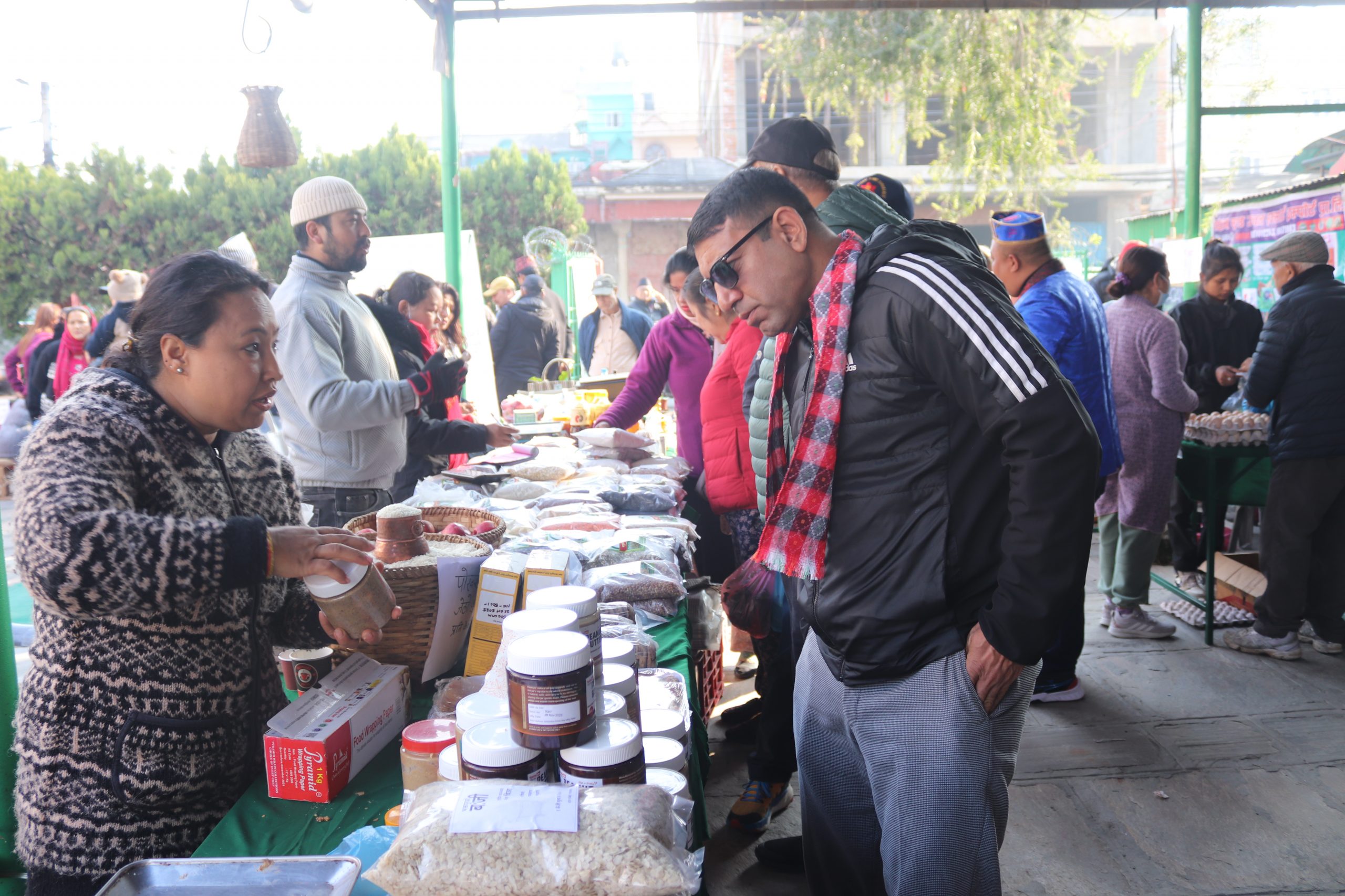 रैथाने एग्री प्रडक्टका अभियन्ता कृष्ण स्याङ्ताङले मेलामा नेपालमा उत्पादित मह, सिस्नो, चामल, गेडागुडी, कपडा, सातु, सुन्तलालाई प्रदर्शनी तथा व्यापारका लागि राखिएको बताउनुभयो । मेलामा ५५ जिल्लाका उत्पादन राखिएका छन् । उपभोक्ताले ती उत्पादन खरिद गर्नसक्ने छन् ।