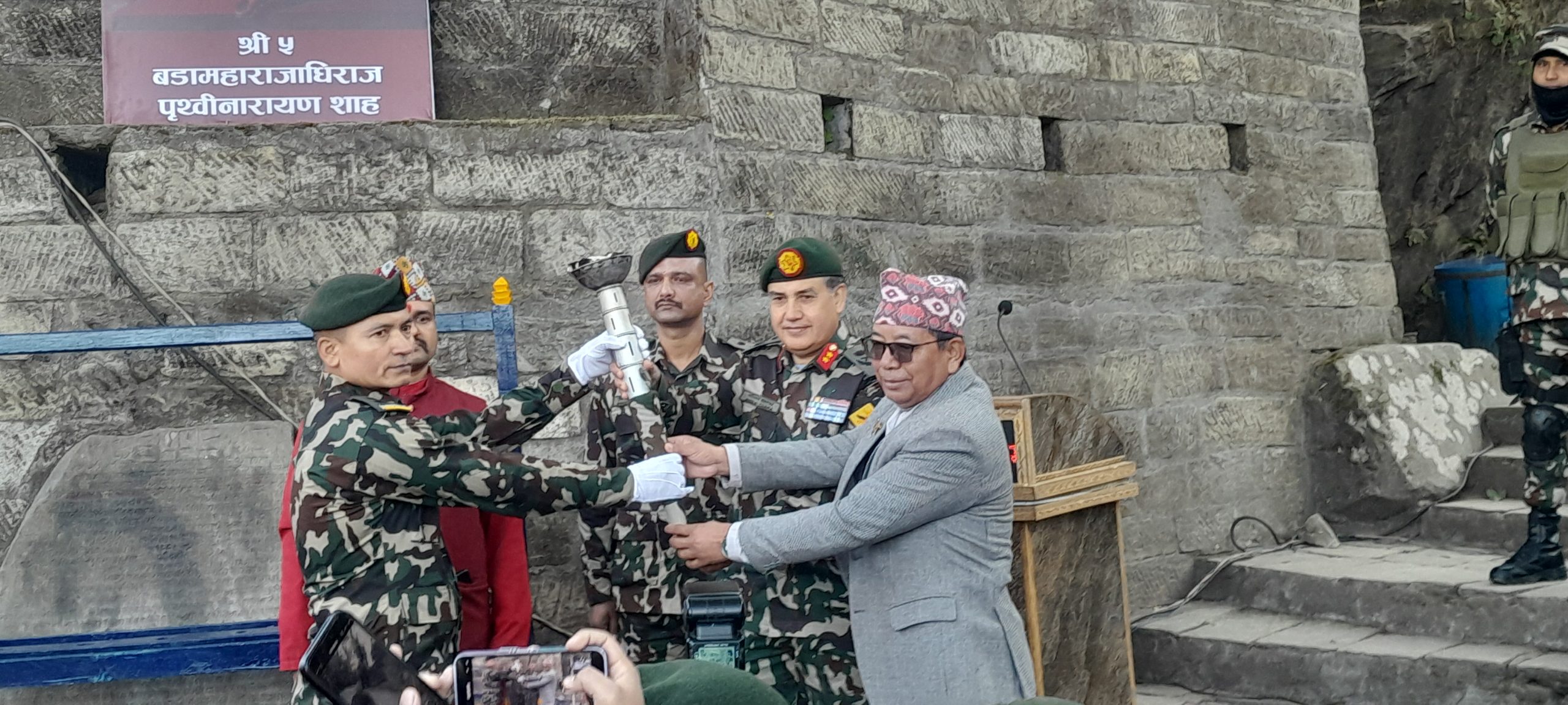 गोरखाबाट निस्किएको टोलीले आज धादिङस्थित सेनाको टोलीलाई गोरखाबाट लिएर गएको राष्ट्रिय झण्डा र टर्च हस्तान्तरण गर्नेछ भने धादिङको टोलीले नुवाकोटस्थित सेनाको टोलीलाई गोरखाबाट लिएर गएको राष्ट्रिय झण्डा र टर्च हस्तान्तरण उहाँले बताउनुभयो ।