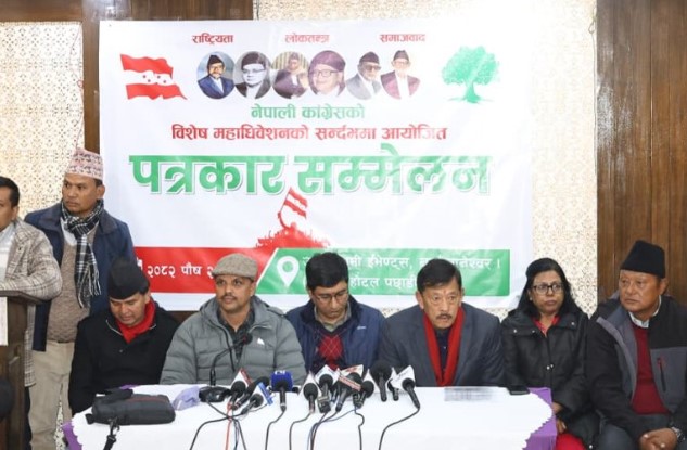 काठमाडौँ- नेपाली काँग्रेस विशेष महाधिवेशन आयोजक पक्षले आज पत्रकार सम्मेलन गरी विशेष महाधिवेशन तयारीका लागि विभिन्न उपसमितिहरु गठन गरेको छ ।