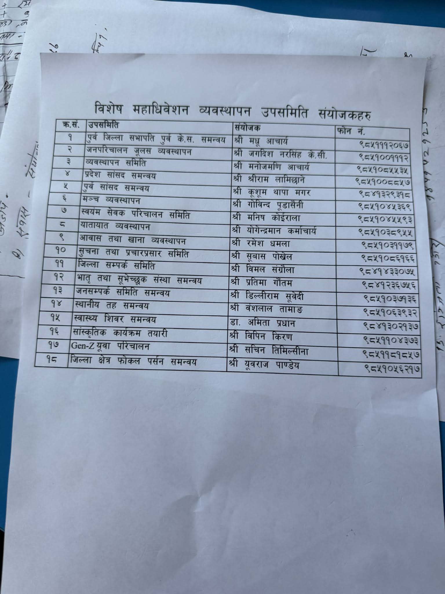 विशेष महाधिवेशन व्यवस्थापनका लागि १८ वटा उपसमिति गठन