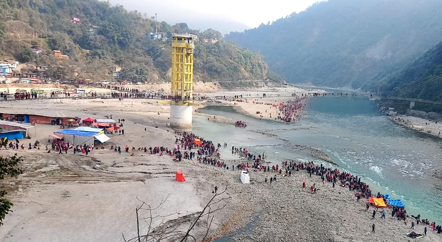 मुक्तिनाथबाट बग्दै आउने कालीगण्डकी नदीमा स्याङ्जातर्फ जान तीनमुखे पुल निर्माण भएको छ । पाल्पा, गुल्मी र स्याङ्जातर्फ जाने तीनमुखे पुलमा पनि भक्तजनको बाक्लो उपस्थिति रहेको रुरु सञ्चार प्रालिका अध्यक्ष तिमिल्सेनाले बताउनुभयो । “कालीगण्डकी जलविद्युत् आयोजना मिर्मिमा पानी थुनिएकाले यहाँ नदी सानो छ । स्नान गर्न र ऋषिकेशव दर्शन गर्न आउने भक्तजनलाई तीनमुखे पुलले सहज बनाएको छ”, उहाँले भन्नुभयो ।