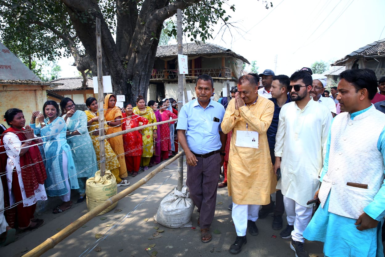 सर्लाही ४ निर्वाचन क्षेत्रका मतदान केन्द्रमा कांग्रेस सभापति थापा