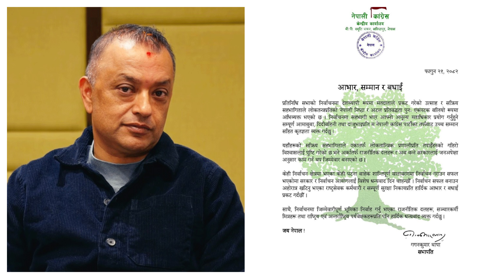आभार, सम्मान र बधाई: काँग्रेस सभापति थापा