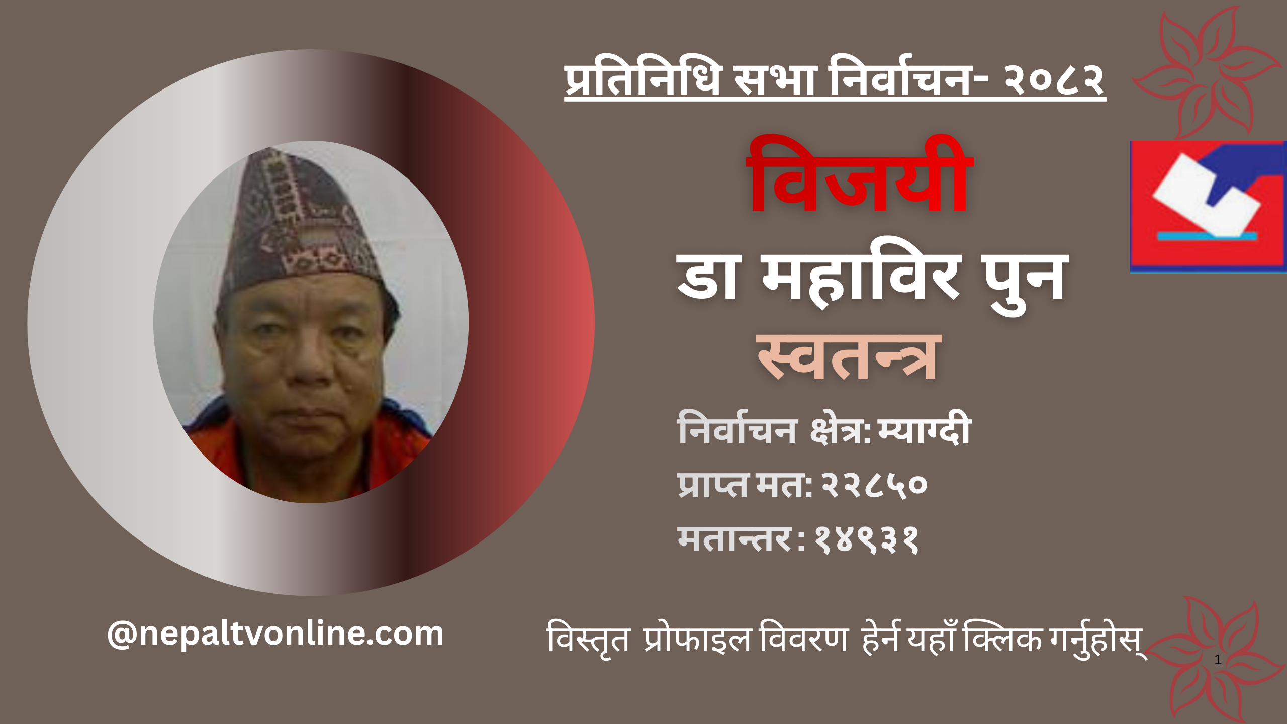 म्याग्दीबाट स्वतन्त्र उम्मेदवार महाविर पुन निर्वाचित