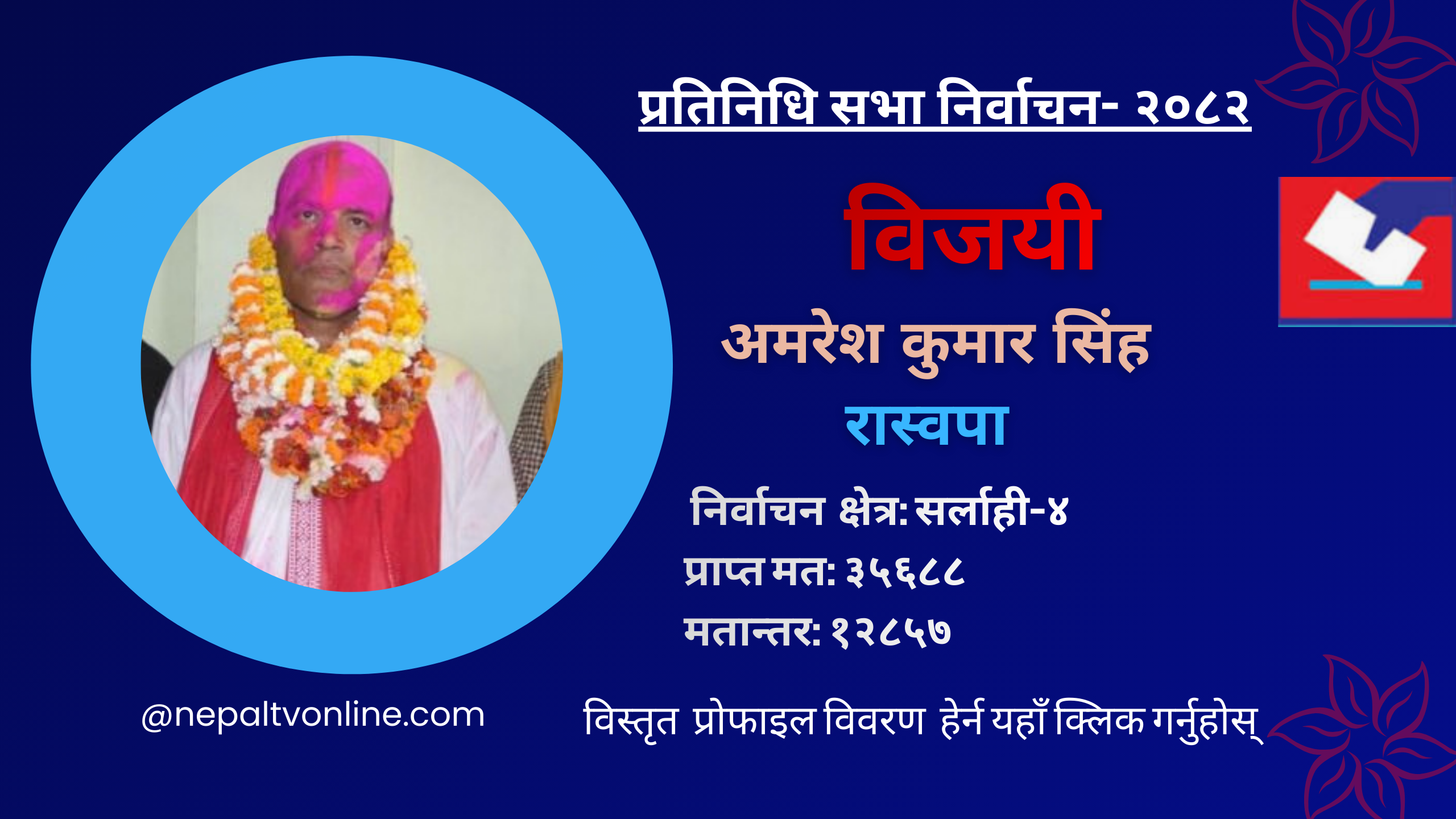 सर्लाही-४बाट काँग्रेस सभापति थापालाई हराउँदै रास्वपाका अमरेश कुमार सिंह विजयी