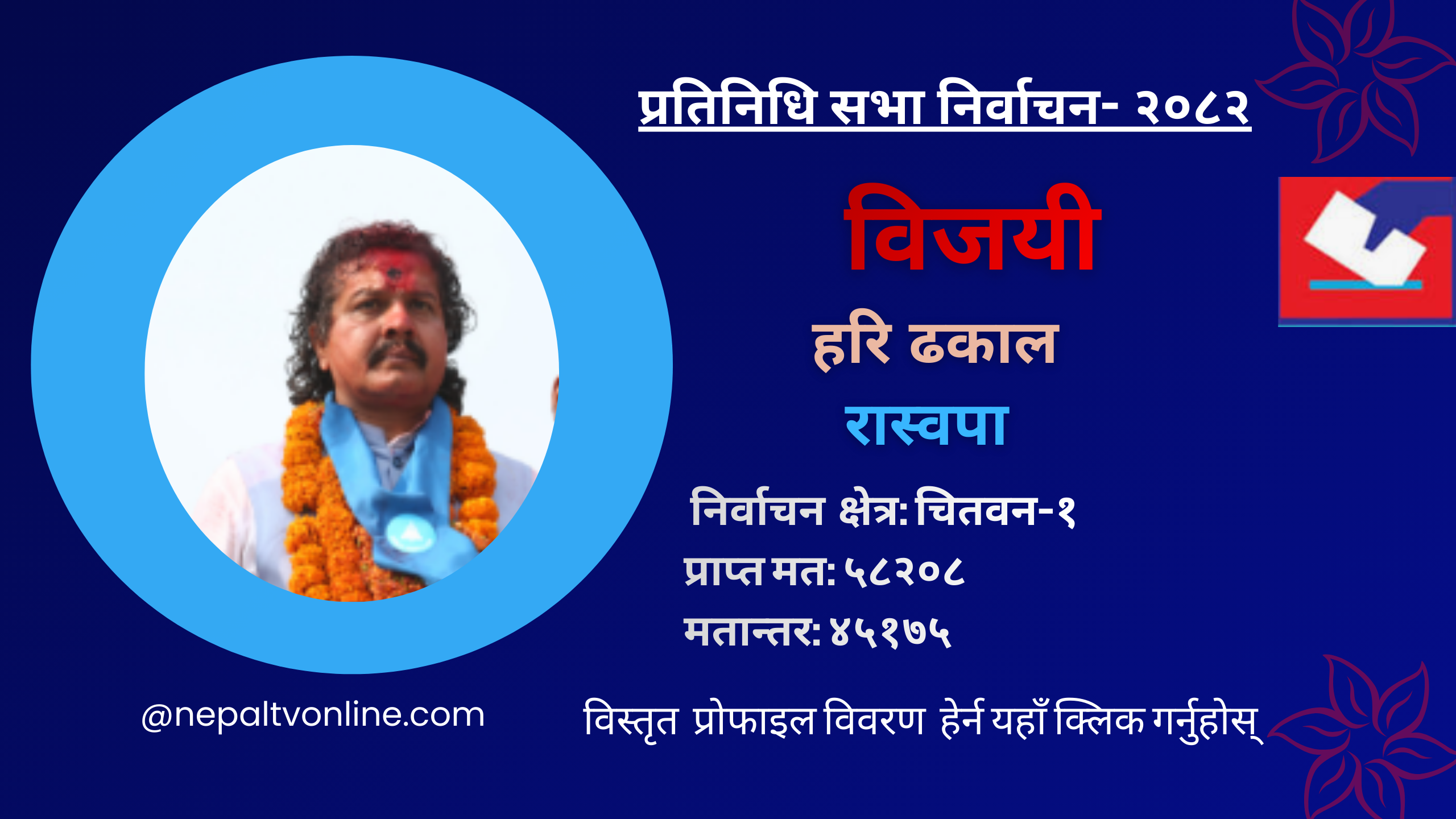 चितवन-१ बाट रास्वपाका हरि ढकाल विजयी