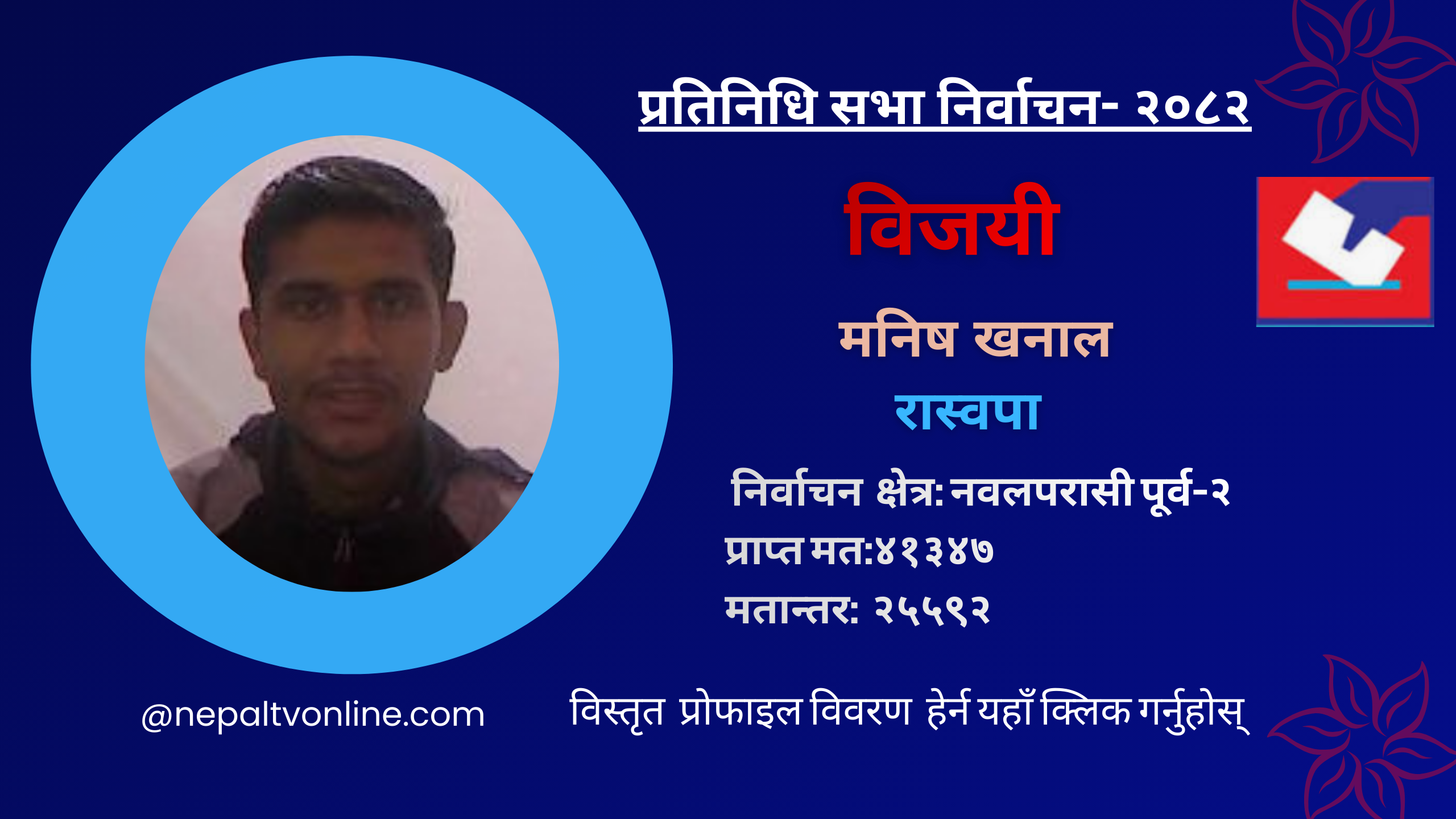 नवलपरासी (बर्दघाट सुस्ता पूर्व)-२ बाट रास्वपाका मनिष खनाल विजयी