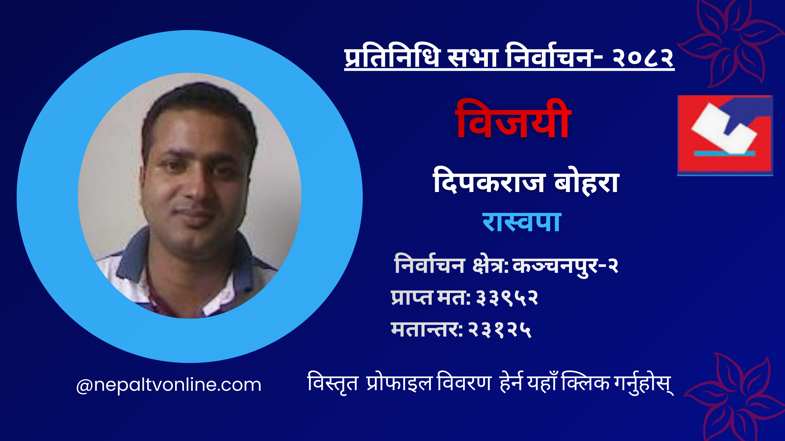 कञ्चनपुर-२ बाट रास्वपका दिपकराज बोहरा विजयी