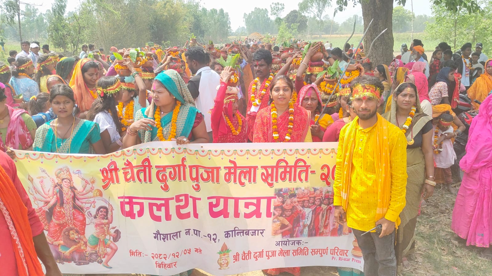 कान्तिबजारबाट सुरु भएको बिशाल कलश यात्रा एघारनम्बर, सातनम्बर, लक्ष्मिनीया हुँदै रुपनी खोलामा कलश भरी परडिया हुँदै कान्तिबजार आएको थियो । बाजागाजसहित सुरु भएको यात्रामा हजारौँ जना सहभागी थिए ।
