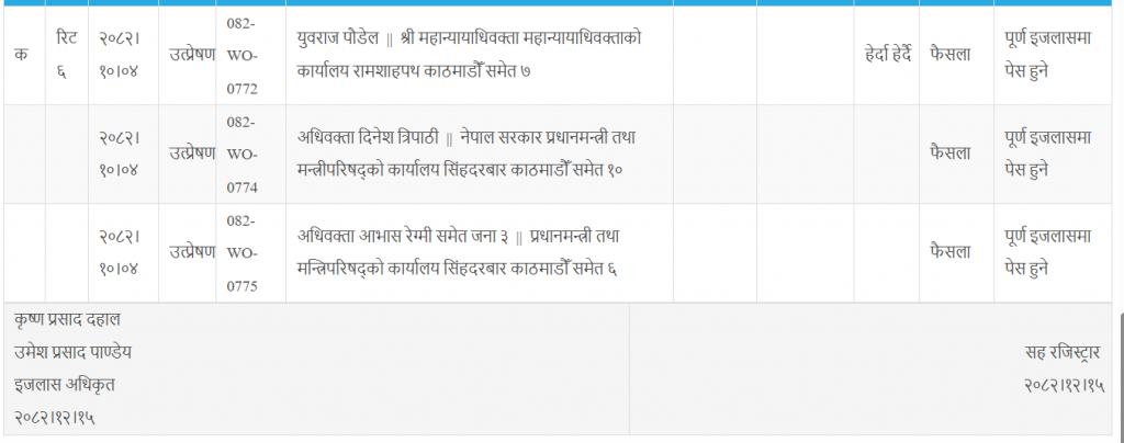 न्यायाधीश विनोद शर्मा र अब्दुल अजीज मुसलमानको इजलासले उक्त मुद्दा सुनुवाइका लागि पूर्ण इजलासमा पेस गर्न आदेश दिएको हो ।