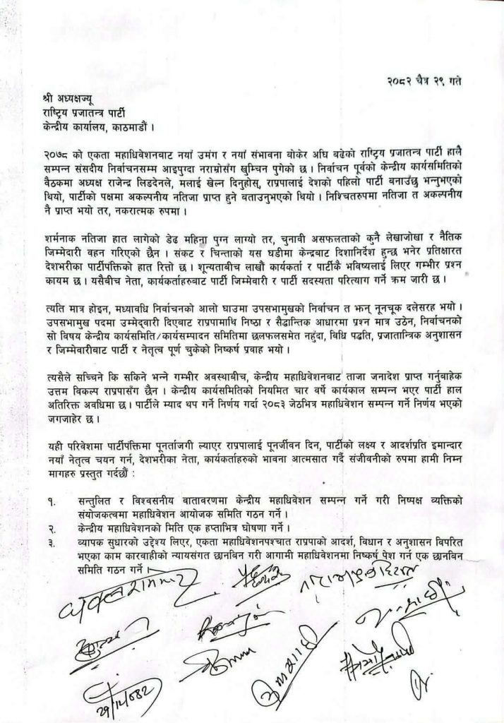 राप्रपा भित्र विवाद-महाधिवेशनको मिति घोषणा गर्न महामन्त्री राणापक्षको माग